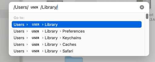- Enter and search for ~/Library.
