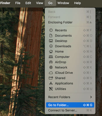 - From the menu bar, click on <Go>, then select <Go to Folder...> on the drop-down.