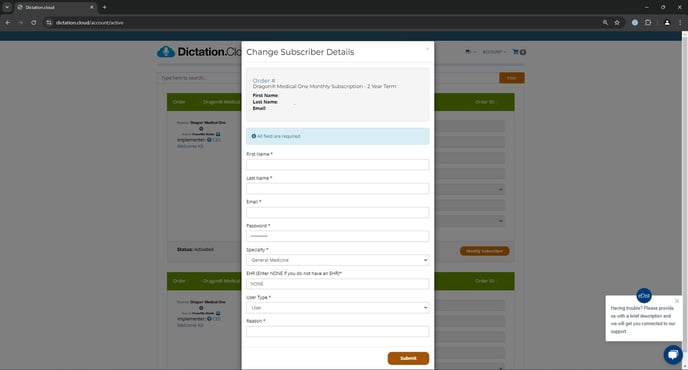 This article will outline how to update your Dragon subscriber user information within Dictation.Cloud