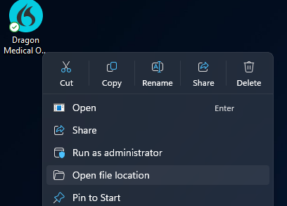 1) <Right Click> on your Dragon icon and select <Open file location>.