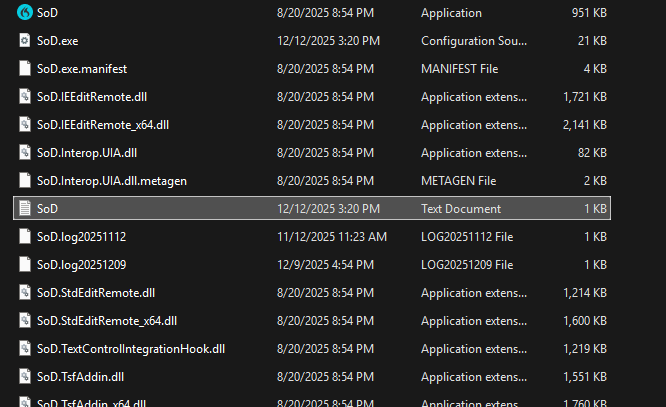 2) In the installation folder location, locate the "SoD" text document.